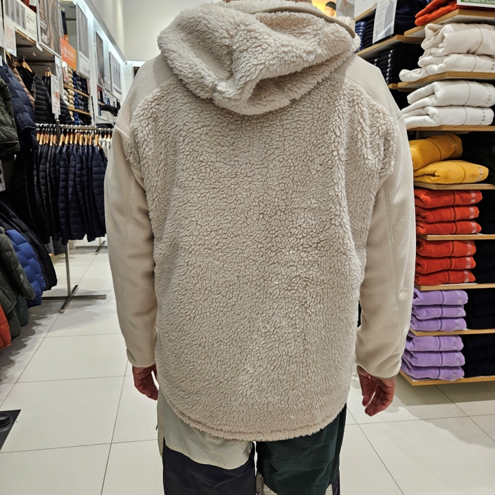 위에서 입고 있는 건 아이보리 색상이라고 보시면 될 내추럴 색상의 후리스 풀짚 파카였습니다.