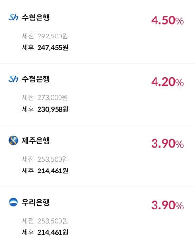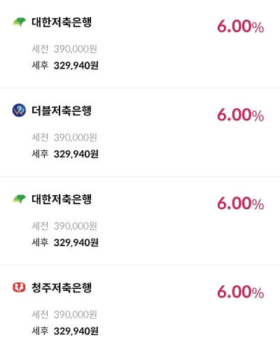 1위부터 4위까지 모두 6프로의 금리를 제공함으로 순위는 상관없이 봐주시길 바랍니다.