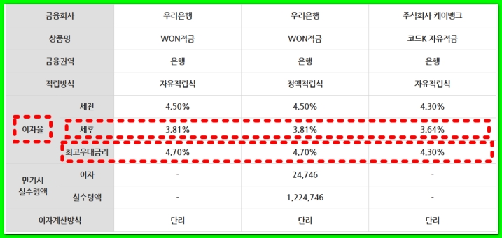 적금 이자 계산기 금리 비교