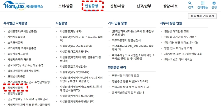 홈텍스 폐업증명서 발급 받기
