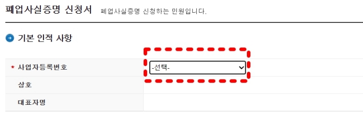 여기서 내가 발급하려는 사업자 등록 번호를 선택해 줍니다.